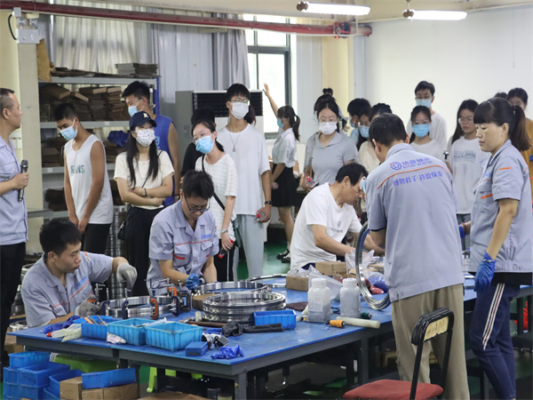 參觀過程中,博盈軸承公司負責人回復了青年們關于精密軸承制造生產、軸承產品用途、軸承行業就業等相關問題。
